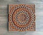 Mandala w naszym wydaniu to wyjątkowa dekoracja, do jej stworzenia inspirację czerpiemy z dalekiego wschodu. Złożona z wielu precyzyjnie barwionych oraz dopasowanych do siebie warstw, tworzy niebywały efekt 3D, czego nie są w stanie w pełni oddać nawet najlepsze zdjęcia. Mnogość kształtów i warstw sprawia, że o każdej porze dnia prezentuje się inaczej. Posiada otwory ułatwiające zawieszenie jej na ścianie. Zobacz również nasze surowe mandale.